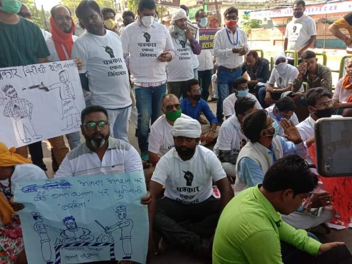 इस हमले के खिलाफ 2 अक्टूबर को प्रदेश भर के पत्रकारों ने गांधी मैदान से मुख्यमंत्री निवास जाने के लिये मोर्चा निकाला लेकिन आकाशवाणी चौक पर उन्हें पुलिस द्वारा रोक दिया गया। लम्बे इंतज़ार के बाद जब बघेल मिले ही नहीं तो पत्रकारों ने उनके नाम पर तैयार मांग पत्र को वहीं जला दिया। अगले दिन से ही कमल शुक्ला आमरण अनशन पर बैठ गये। छह तारीख की रात उनका स्वास्थ्य ठीक रहने के बाद भी पुलिस वालों ने उन्हें उठाकर जबरिया अस्पताल में भर्ती करा दिया। कमल पुलिस पहरे में भर्ती तो रहे परन्तु उन्होंने अपना अनशन जारी रखा। इधर बूढ़ा तालाब पर पत्रकारों का धरना भी चलता रहा।